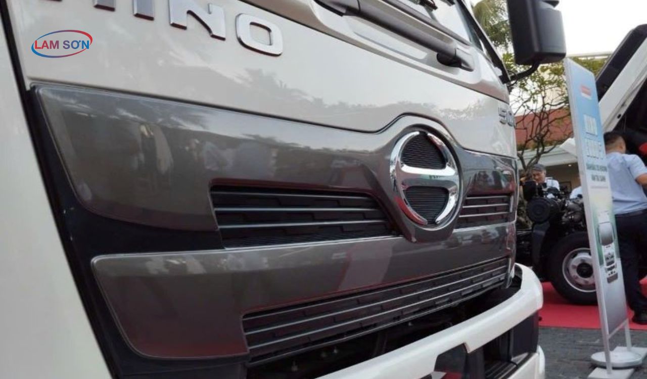 • Lưới tản nhiệt lớn kết hợp logo Hino mạ chrome nổi bật.