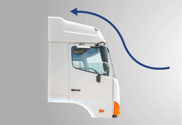 – An toàn hơn cho tài xế & giảm đến 4% sức cản gió nhờ thiết kế cabin mới. Các thanh gia cố bên cửa và dưới sàn cabin giúp hấp thụ lực, an toàn tối đa cho tài xế